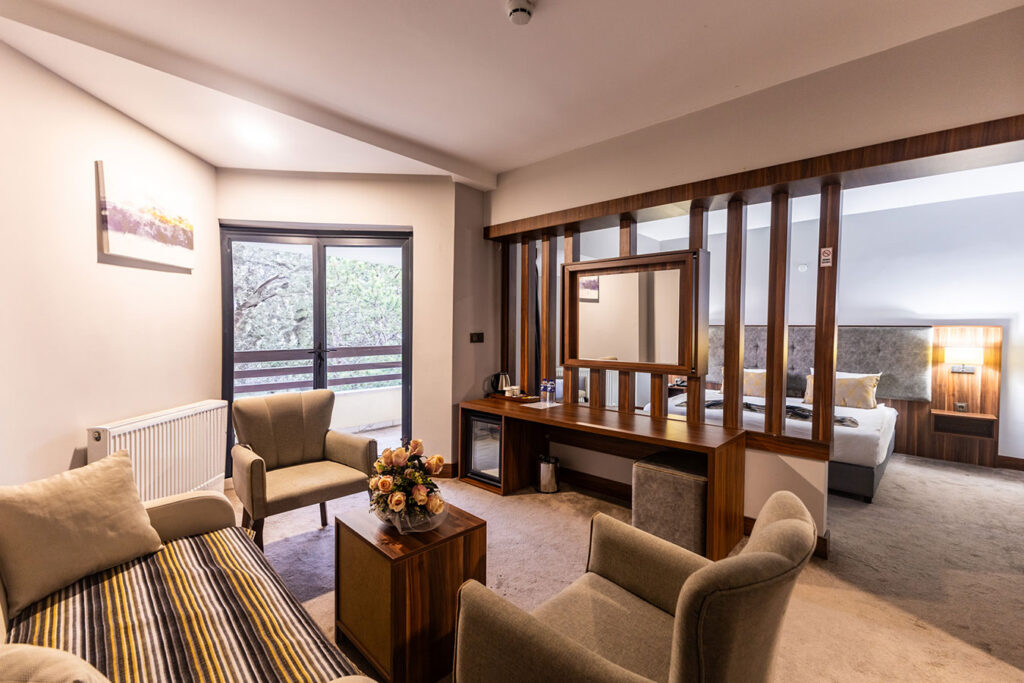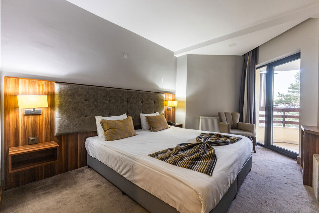 40 metrekare genişliğindeki odalarda büyük geniş yatak (french bed) ve bir çekyat mevcuttur. Tüm zeminler halı kaplıdır ve odalar balkonludur.